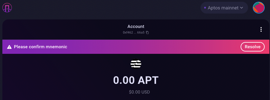 4. Please click "**`Resolve`**" to confirm the 12 Secret Recovery Phrase<br>