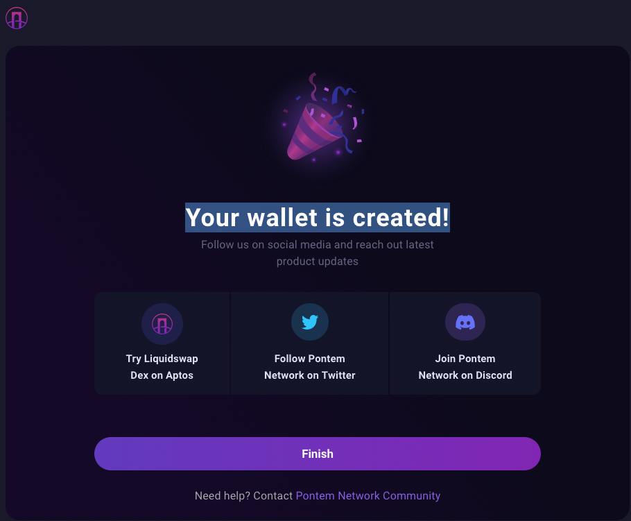7. Congratulations! Your wallet has been successfully created, and is now ready to accept deposits of APT tokens.