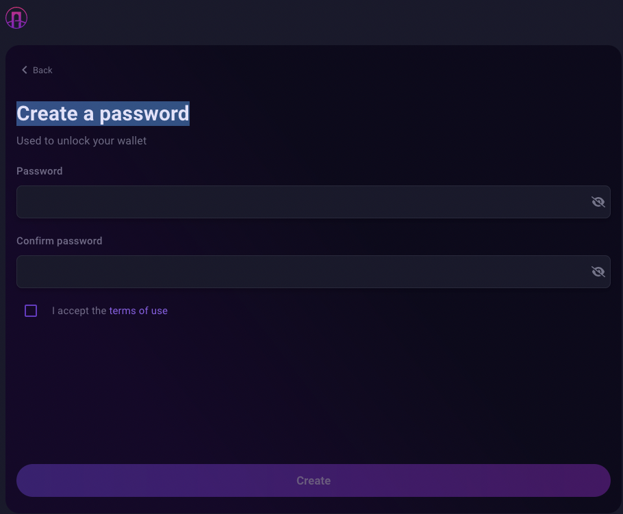 1. If this is your first time, kindly select the option to "Create Wallet".